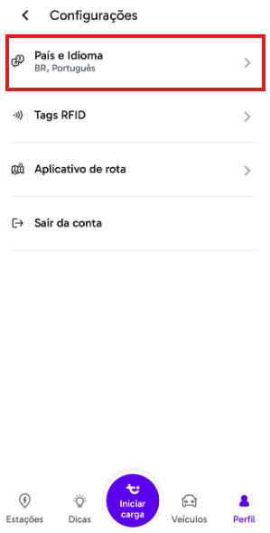 Abra aba "Perfil" e clique na opção "Configurações" e depois "País e Idioma", nela encontramos os atuais idiomas disponíveis para o aplicativo. Até o momento, você pode optar entre português e espanhol e futuramente também será possível acessar os conteúdos em inglês. É só selecionar o desejado e pronto, o App será carregado na língua de sua preferência