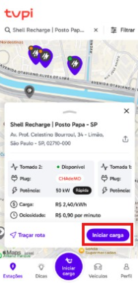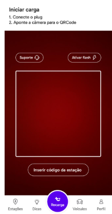 2. No aplicativo, vá para a aba "Iniciar Carga" e escaneie o QR Code da estação;
