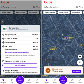 Quando começar a carregar o seu veículo, uma tela com as informações principais vai aparecer automaticamente para que acompanhe o andamento da recarga.