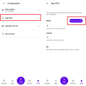 Após cadastrar o código desse aparelho, o usuário pode aproximar a Tag/Cartão RFID no carregador e iniciar a carga através dele, sem precisar usar o aplicativo, funcionando como um substituto do App.