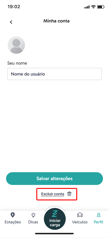 Em seguida na tela de edição do seu perfil você pode clicar em "Excluir Conta".
