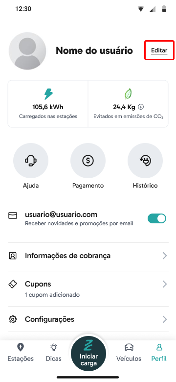 Dentro do aplicativo você pode ir em "Perfil" no menu inferior