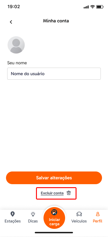 Em seguida na tela de edição do seu perfil você pode clicar em "Excluir Conta".