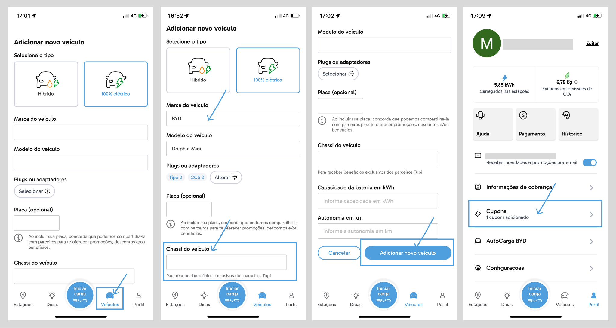 Para garantir o acesso ao seu cupom de recarga, é essencial que o número do chassi do seu veículo esteja corretamente cadastrado em sua conta.
