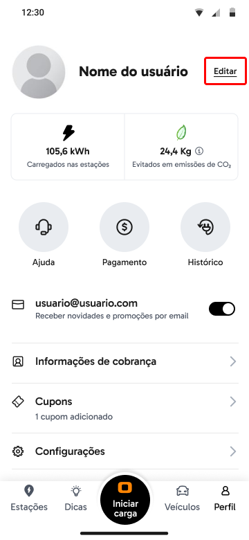 Dentro do aplicativo você pode ir em "Perfil" no menu inferior