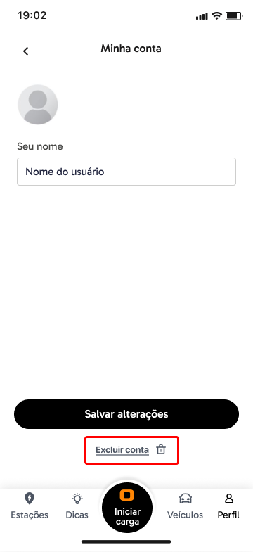 Em seguida na tela de edição do seu perfil você pode clicar em "Excluir Conta".