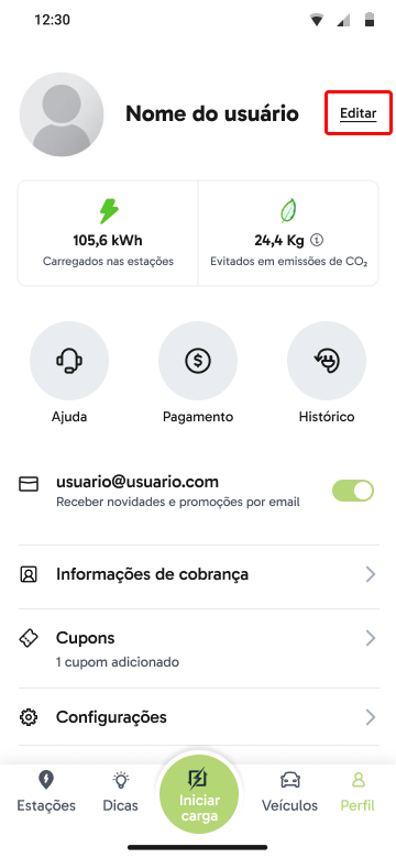 Dentro do aplicativo você pode ir em "Perfil" no menu inferior