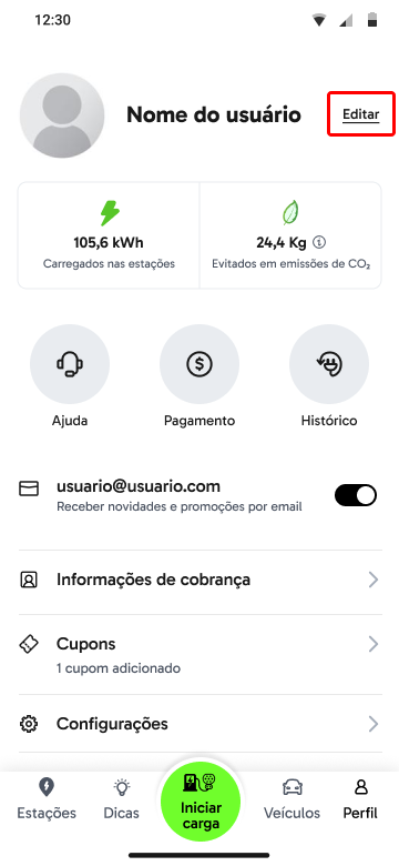 Dentro do aplicativo você pode ir em "Perfil" no menu inferior