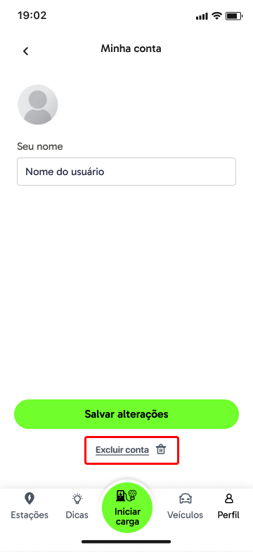 Em seguida na tela de edição do seu perfil você pode clicar em "Excluir Conta".