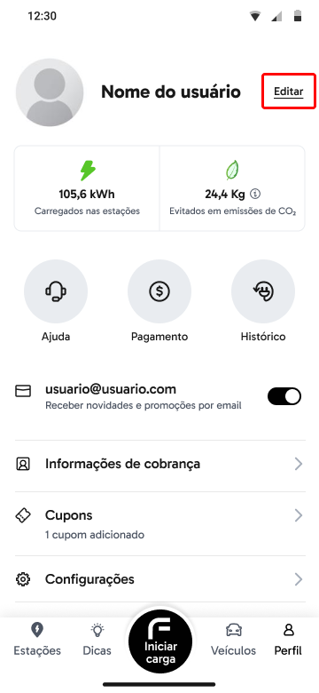 Dentro do aplicativo você pode ir em "Perfil" no menu inferior