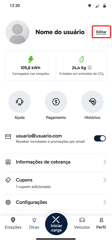 Na tela do seu perfil toque em "Editar"