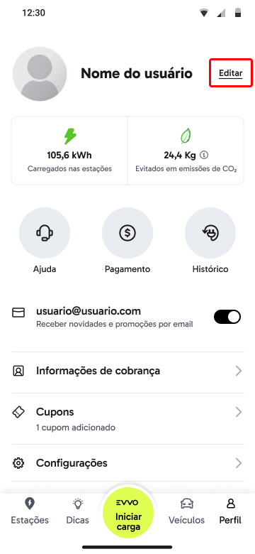 Dentro do aplicativo você pode ir em "Perfil" no menu inferior