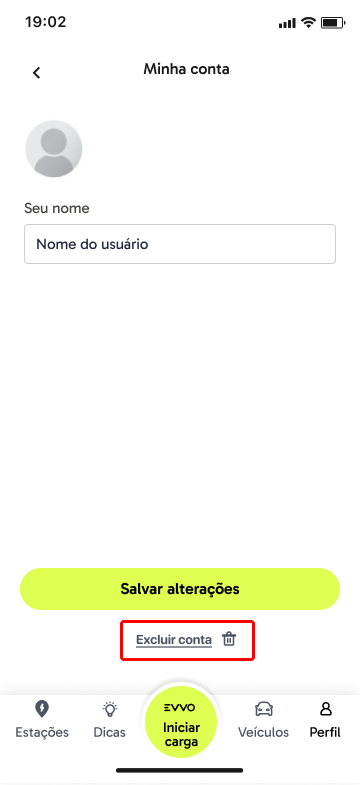 Você pode solicitar a exclusão dos seus dados e da sua conta diretamente no aplicativo EVVO.